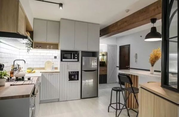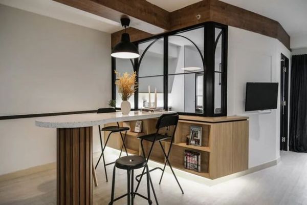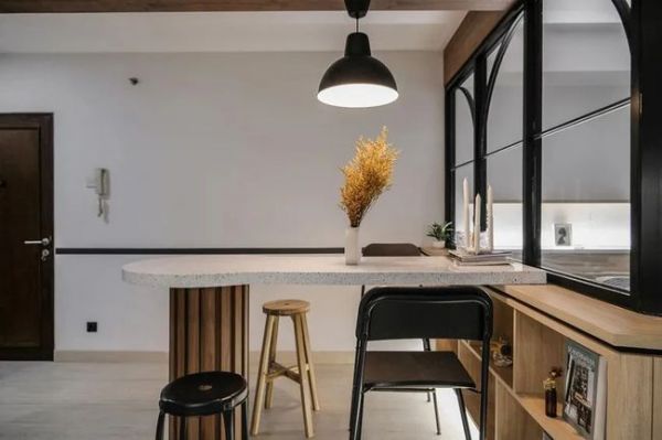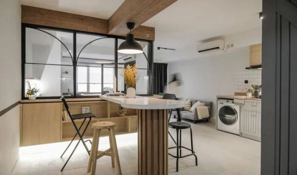 与卧室保持半私密性,同时置入弧形吧台