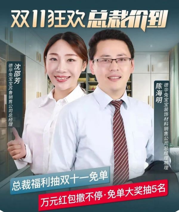 线下兔宝宝双11期间开启“双11全球狂欢季 兔宝宝·让家更好”活动,直播间现场连线南京、上海、泉州、西安四大分会场。线下门店的杰出代表有杭州明星经销商丁为民、武汉明星经销商丁瑶、南通明星经销商耿松等做客直播间,与观看直播的观众在线实时互动,妙趣横生的交流一度引爆全场!