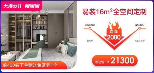 今年的双十一,兔宝宝推出了多款优惠定制套餐,真正让“拎包入住”成为事实。其中兔宝宝定制产品的一大特色是,使用的材料可以自由选择,在很多消费者看来这样的定制产品更让人满意。作为环保品牌,今年兔宝宝还推出了除醛抗菌产品,更是成为消费者咨询最多的明星产品。好空间必须要用好材料,而兔宝宝定制完全满足客户需求。