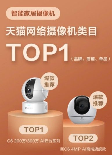 自2020年开始,萤石还先后与薇娅、罗永浩等超人气主播合作智能家居摄像机CP1直播带货,更是加深了萤石对于大众的认知。在消费者喜爱的智能家居摄像机中,C6 系列和新 C6 2K 超感知版分别位列第一和第 二。其中,新 C6 也是萤石在今年 6 月发布的新品,是一款“会思考的摄像头”。