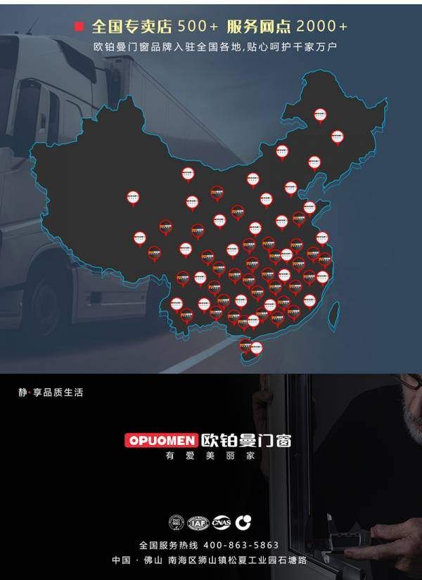 欧铂曼拥有三大现代化生产基地总占地6万㎡,是集系统门窗、门窗生产设备、型材喷涂、玻璃加工于一体的现代化生产企业,可实现从设计、研发、生产到营销、服务各环节无缝衔接,产品连续3年产品抽检超国家标准合格,拥有专业研发创新团队,每一次新品上市都引领门窗定制行业发展潮流,现全国专卖达500多家,遍布300多座城市,服务点多达2000多家。