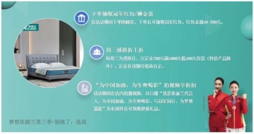 为了让更多消费者感受到依丽兰家具的品质和设计,把家中装扮的温馨、质感,特根据消费者不同的购买习惯,打造多重优惠购买方案,线下线上相结合,让购买者自主选择。同时还有抽红包、砸金蛋、好礼相送等活动,让每一位购买者用最实惠的价格买到高品质的家具。