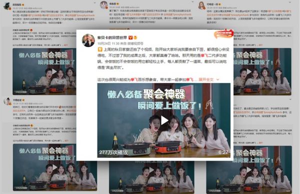 多圈层与泛人群KOL集结种草接力,联手演绎摩飞百乐生活,核心产品卖点结合多维度聚会场景体验,为聚会创造新玩法,促使“摩飞大有想象”的活动心智深入人心,实现双11期间的新品上市声量和销量大爆发!
