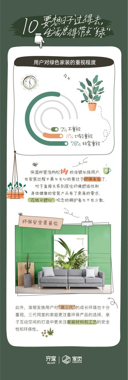 《报告》指出,家装过程中准银发族最为关心的仍是环保和安全,对于直接关系到居住环境舒适性和身体健康的家装产品,准银发族秉持着“花钱买舒心”的观念半点也不含糊。其中,三代同堂的家庭更注重环保产品的选择,亲子互动空间的打造中更关注家装材料和工艺的安全性和环保性,为家庭的身体健康提供有力保障。