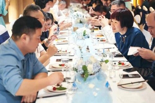 当宴会正式开启,乐队成员在台上表演优雅浪漫的爵士,装扮精致的侍者将美味的食物流水般送上长桌,与会的设计师、业内领导、大咖们在优雅的气氛中小酌一杯,辅以大厨精心制作的美味,不免沉浸于老板电器推动行业的“蒸烤混动”黑科技所营造出的美好氛围中。