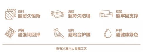 顾家家居以“家”为原点,致力于为全球家庭提供健康、舒适、环保的家居解决方案;芝华仕沙发则将重心放在了功能性产品上面,同时也是始终坚持创新,致力于打造更加时尚的功能新沙发产品。而左右沙发与之不同的是,左右沙发创始人于1986年开始制作沙发,始终专注于沙发产品,累积了六大专属工艺,从面料、海绵、框架、弹簧、结构、环保六大方面全面升级,致力于打造更高质量、更高舒适度、更高颜值的品质沙发,为每一个选择左右沙发的家庭打造专属的理想家居环境。