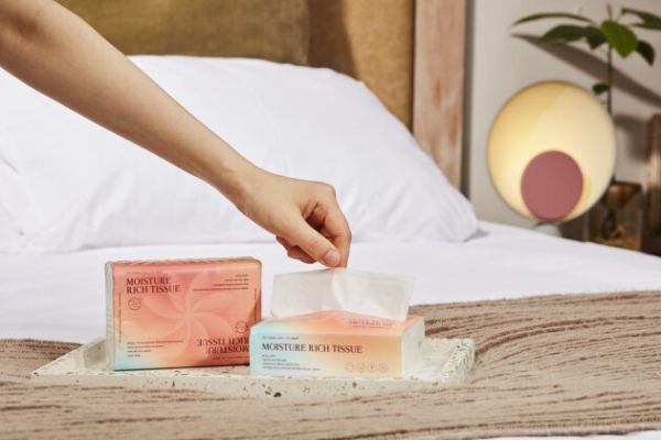 以粉白交相辉映的花瓣点缀作为该款纸巾的外包装,从外表就传达了花瓣纸的优雅与精致,而纸巾的质感并不仅仅体现于外表的高端设计,其内里也至关重要。除却普通纸巾所运用到的原生木浆,花瓣纸的研发选用了国民度极高的MIYOSHI——全球乳霜保湿剂di一品牌,选料用心且先进。