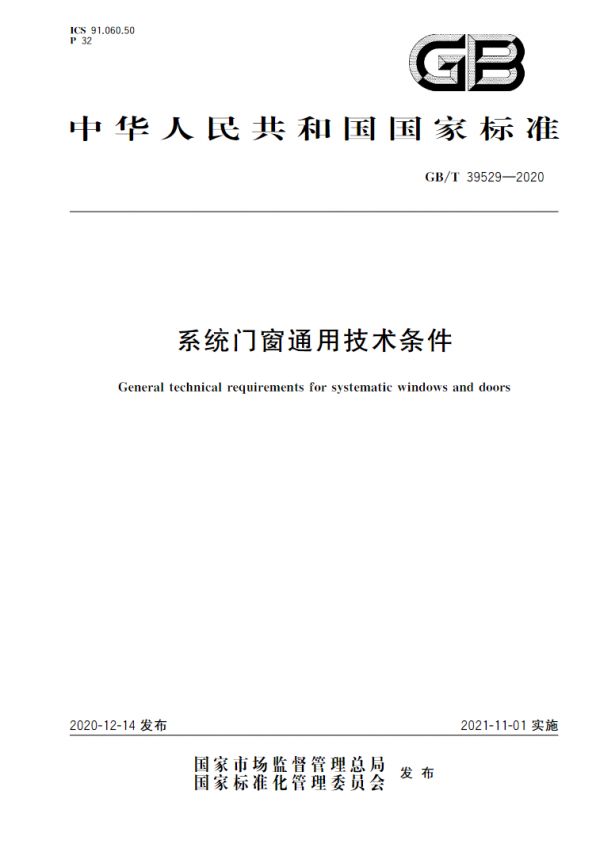 11月1日,由中国建筑科学研究院有限公司负责编写、全国建筑幕墙门窗标准化技术委员会归口管理的国家标准《系统门窗通用技术条件》正式实施。