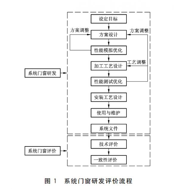 《系统门窗通用技术条件》提到系统门窗应按照系统技术要求研发,包括目标设定、方案设计、性能模拟优化、加工工艺设计、性能测试优化、安装工艺设计和系统文件总结。其中,性能模拟优化应为方案调整提供依据,性能测试优化应为方案设计和加工工艺设计调整提供依据。