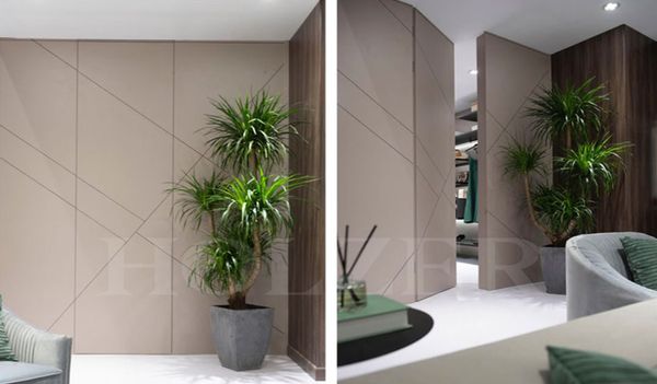 隐形门的走俏得益于它相较于普通木门更好的隐蔽性和装饰性,独特的内在设计结构,不需要安装门框、锁具以及门把手,保持了和墙面及家装风格的统一性,一扇门就这样“消失”在了墙面上。大多数用户倾向于将卧室门安装为隐形门,天然地分割出独属于自己的秘密花园,加之霍尔茨优质的降噪隔音工艺作保障,打造出现代人心中一处梦寐以求的桃花源。