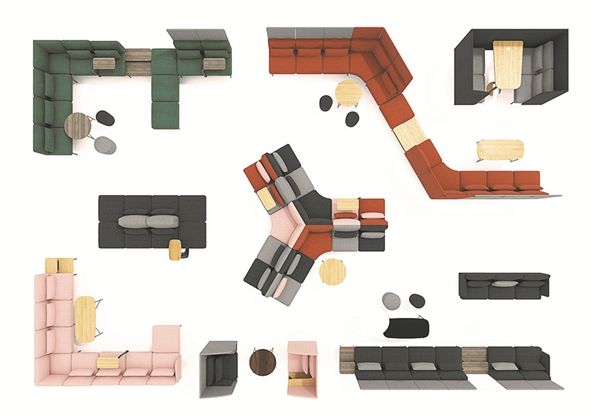 Puffy可配备电源、USB插口和茶几桌板等配件,支持协作交流或独立专注办公。模块化的设计适用于不同空间布局,适用于大厅、接待前台、社交、放松等各类共享空间,营造各种人性化开放的情境,提升办公效率。