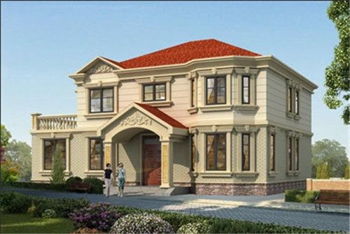 图片描述:这款带露台的二层小洋房,看起来非常的时尚洋气,立面底层以深色的文化砖进行装饰,既好看又耐脏,再配上大面积的黄色文化砖,让整体颜色更加的和谐统一。而斜顶屋顶+红色瓦片的设计,则可以给人眼球一亮的感觉。侧面的露台可以打造成休闲区,业主可以在哪里会客泡茶。