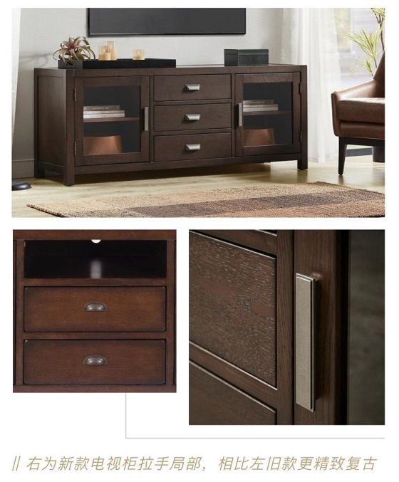 除整体线条外,整系列的倒角、拉手也进行了新升级,加入Harbor House自主开模设计的古银色金属长拉手,使整个套系更年轻现代。