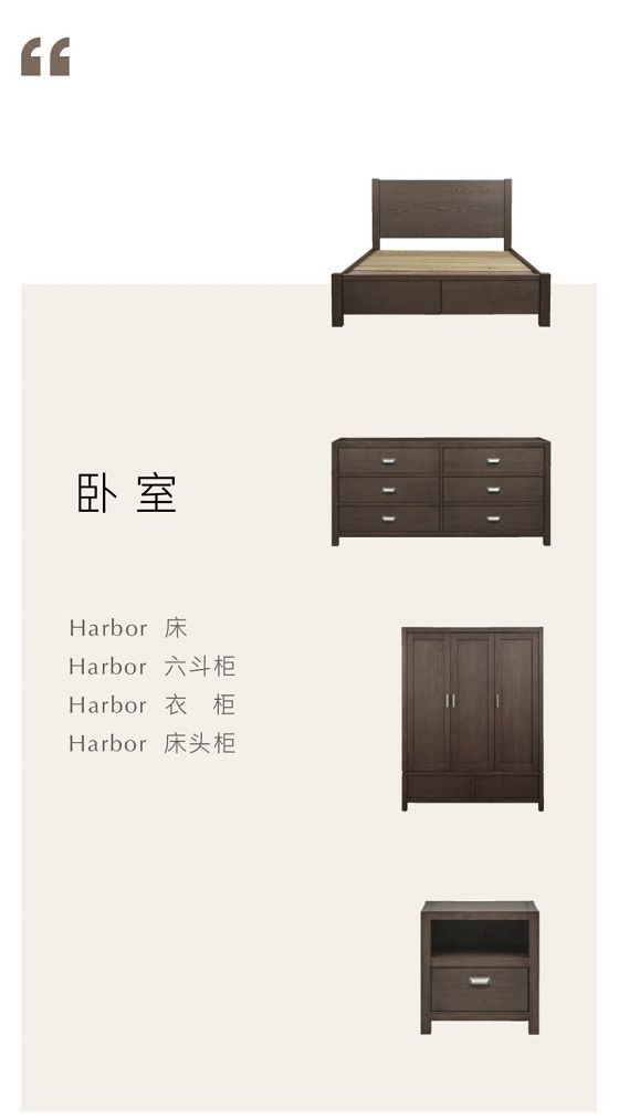 当你踏进一个卧室的瞬间,便能感受得到居室主人对这个家的用心,从自在感到舒适性,由新Harbor床、柜系列搭置出的空间风格不妨说是化作了「一种不赶时髦的居住态度」。