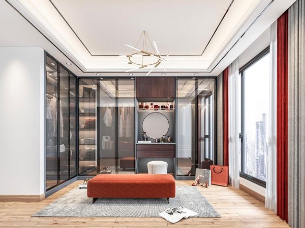 2.如果家里面积够大,还有独立衣帽间的话,那梳妆台放在衣帽间最好不过,化妆穿搭一步到位。