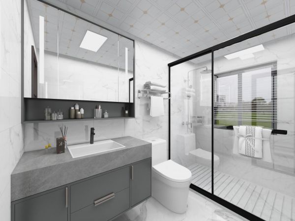 3.如果卧室没有足够的位置放梳妆台的话,也可以将卫生间的台盆区域作为梳妆台,镜子选择镜面柜,把化妆品和护肤品放进柜子,洗漱完可以直接化妆护肤,但在卫生间不方便坐着化妆,湿气也重,放的化妆品和护肤品容易受潮发霉,所以一定要做好干湿分离。