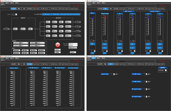 内置高转换速率DSP处理芯片,可通过上位机控制软件,实现对各路信号进行路由、增益、PEQ、 高低通、远程开关机等控制:同时有完善的信号压限,延时及输入和输出电平实时监控和控制,能满足多种场合的音响系统需求。