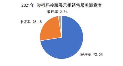 从销售服务指标来看,2021年度,冷藏展示柜用户销售服务满意度为96.4%。其中,澳柯玛用户的满意度为97.5%,高于总体1.1个百分点。
