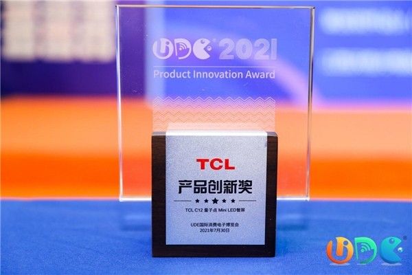 8月,在UDE2021国际消费电子及未来生活博览会上,TCL C12 QD-Mini LED智屏、TCL 98X9C IMAX Enchanced巨幕智屏荣获UDE 2021“产品创新奖”,TCL X12 8K Mini LED领耀智屏荣获UDE 2021“技术创新奖”。