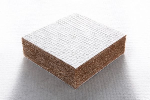 将椰棕纤维与低熔点纤维混合,通过3D气流梳理,使两种纤维交织成三维空间网状结构,形成无数立体网状透气孔,透气防潮。