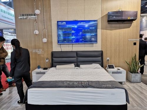 “三翼鸟”智慧卧室场景吸引众多来者参观。智能枕内置芯片,能实时判断用户睡眠状态。用户还能通过手机查看睡眠质量报告,了解自身健康。
