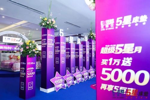 芝华仕5星床垫在陕西西安红星美凯龙太白店5星床垫体验店推出“超级5星月”,开启全体感恩巨惠活动。