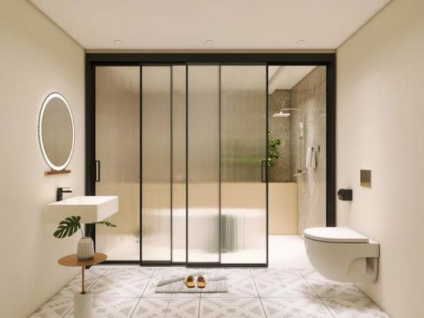 卫浴空间可根据空间大小和使用需求选用平开门或双移门。卫浴间是家庭里比较私密的地方,因而也更适合使用长虹玻璃全景门,能有效区隔”开放空间“与”私密空间“。德立全景门超白长虹玻璃“颜值”很高,能轻松驾驭简约、极简、北欧、法式、日式等家居风格。