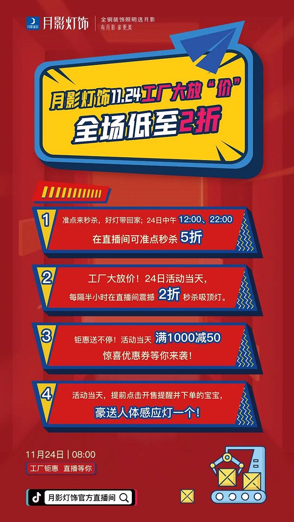11月24日月影灯饰工厂大放“价”,惊喜秒杀5折!速来!