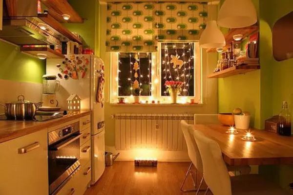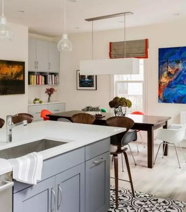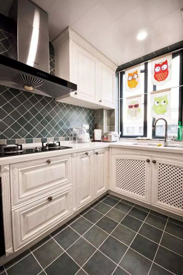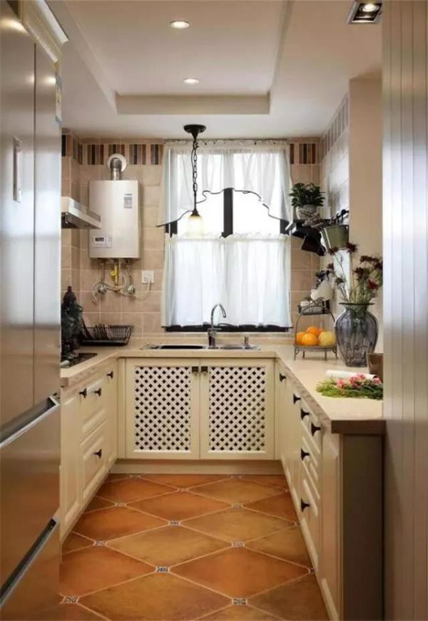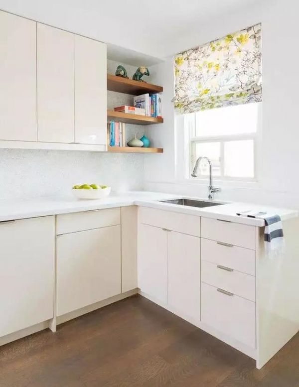 这种悬挂方式在卧室中是比较常用的,但是在厨房中却比较少见。但和其他房间不同的是,在厨房窗帘安装的位置上留了一部分能够透光的缝隙,同时窗帘也不是完全拉开的。所以,平时采用绑带的方式把窗帘束起来,需要遮光的时候,直接把绑带放开就可以了。