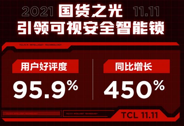 从数据中我们可以直观地看到,人脸识别智能锁及可视化安防智能锁已经得到了广大消费者的认可,并逐渐走俏市场。其中,家电头部品牌TCL更是以黑马姿态出现在各大平台智能门锁榜单中,据TCL 智能家居官方公布的数据显示:TCL智能锁全网全渠道家电品牌智能锁取得佳绩、猫眼可视智能锁类目全网排名前列!同时,TCL可视安全智能锁的用户好评度高达95.9%,同比增长450%,可谓销量口碑双丰收!