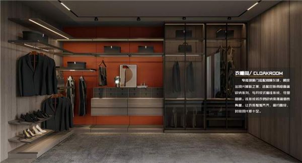 简·爱保罗的衣柜精确把握年轻群体的消费心理,以拥有高级质感的中性灰作为主调,辅以爱马仕橙与金属色作搭配。在简·爱保罗设计师的手下,安静的中性灰遇到耀眼的爱马仕橙,打破原本传统阴郁的空间氛围,为单调的空间注入了新鲜活力,演绎出时尚经典的别样轻奢,最大程度地发挥衣柜的时尚魅力,给人以绚丽时尚的视觉观感。