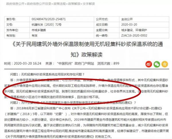 记者在浙江政务服务网注意到一则通知,在2020年3月20日,杭州市城乡建委发布《关于民用建筑外墙外保温限制使用无机轻集料砂浆保温系统的通知》,其中就明确了无机轻集料砂浆保温系统应用现状和存在问题!