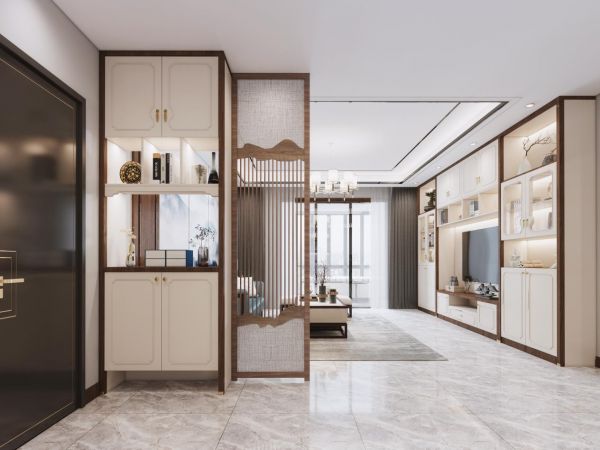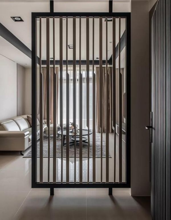 木质栅栏隔断是典型的中式审美元素,端庄典雅,富有质感,适合用在古典、新中式等装修风格的家庭,还可以配合柜体使用,兼具收纳与隔断作用,巧妙提高空间美感。