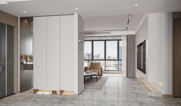 相对于纯隔断来说,柜体隔断不仅美观大方,还增加了收纳功能。在入户区域设立玄关柜,不仅能隔断门厅、美化空间,还能扩大储物空间,轻松解决屋主的收纳储物难题,可谓一举三得。