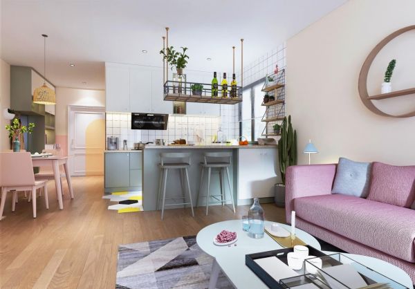 吧台也可以作为厨房与客厅的隔断,一个人时可以直接将吧台作为餐桌使用,闲暇时还可以在这里喝杯小酒,轻松又自在。