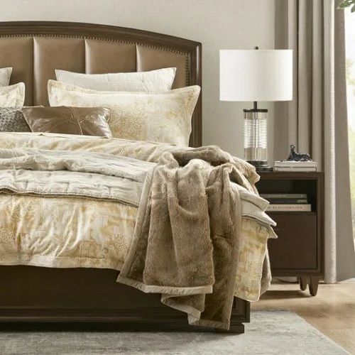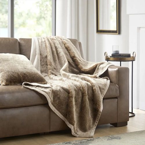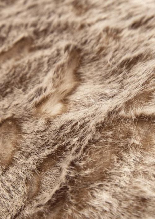 这款驼色的仿真毛腈纶披毯和靠垫套,将秋冬最具暖意的驼色,以皮草的材质加以展现。