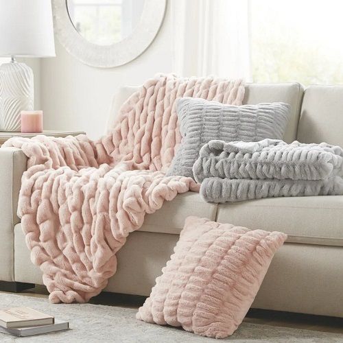 当然也可以给皮草更多的颜色搭配,以仿兔绒的面料,加入粉色,浪漫又梦幻给空间带来活力,更带来暖暖的意味。加入灰调,冷静闲适给人舒适的感受,保持空间亲和力。