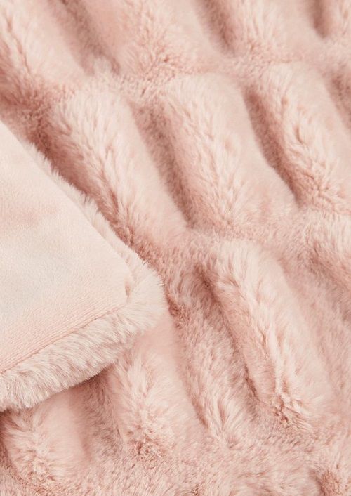 在与皮肤接触的接触面上,加入蓬蓬的感觉,更适合冬日暖暖的需求,这款披毯在面料上增加了起皱工艺,一深一浅的凹凸感,让视觉更加立体。