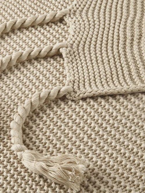 全棉编织的披毯,不论手感还是视觉感受,都成功营造了厚实温暖的感觉,细密精准的走线,让披毯柔顺平滑,亲肤舒适。