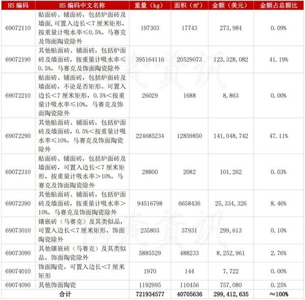 陶卫快讯 | 10月我国陶瓷砖出口总额下滑13%