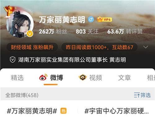 万家丽集团董事长黄志明先生,他是一位具有前瞻性,有格局的的长沙精神浸染的智者,时刻保持着与时俱进的精神,自开通微博以来,粉丝量已超262万,话题阅读量超4.7亿。为感谢所有网友一直以来的关注和支持,2022年2月12日通过微博抽奖送万家丽国际大酒店价值58888元的总统套房2晚、苹果13手机、华为p50手机等缤纷好礼,想了解更多福利,请持续关注“万家丽黄志明”微博!