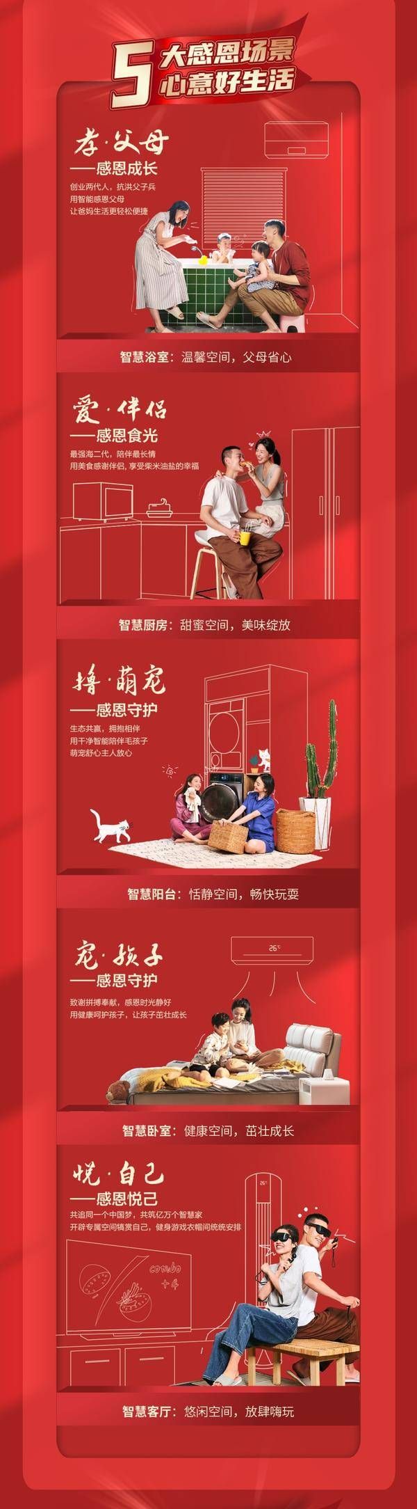 除了这些,此次感恩月,海尔智家还专门针对伴侣、父母、孩子、萌宠、自己五大人群定制了感恩套系,如“孝·父母”感恩守护套系让父母在家洗浴更智慧、更安全,“爱·孩子”感恩成长套系则让孩子拥有健康好睡眠……更让您惊喜的是,不管选择哪个套系,从下单开始,三翼鸟从上门量房,到设计、施工,到安装售后,以及入户后的升级迭代全部一管到底,真正实现终身服务。
