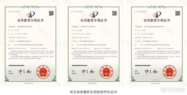 近日,帝王柜族官方公布2021年荣获多项国家专利证书的喜讯,其中包括14项实用新型专利证书和5项软著证书。