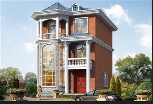这款房屋看起来非常的时尚洋气,立面以红色仿砖墙为主,再配上局部文化砖进行点缀。两层高的罗马柱+欧式构件,将这栋欧式别墅的韵味展现的淋漓尽致。客厅八角楼的造型,不但可以增加室内的采光,而且还可以让房屋的色彩更加明亮。屋顶露台的设计,既方便业主晾晒衣物,又可以种植花草。