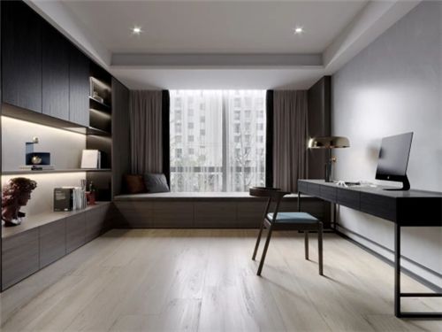 ▲罗兰灰 AC918126RG+极地灰 AC715235G 错落有致的轻纹理地面与米色的墙壁共同构成一幅干净洒脱的画面,营造出了幽深的层次感。简约的搭配可以让人在喧嚣都市里沉静下来,给内心腾出一片净土,休整过后再出发,迎接崭新的一天。 # 书房 #