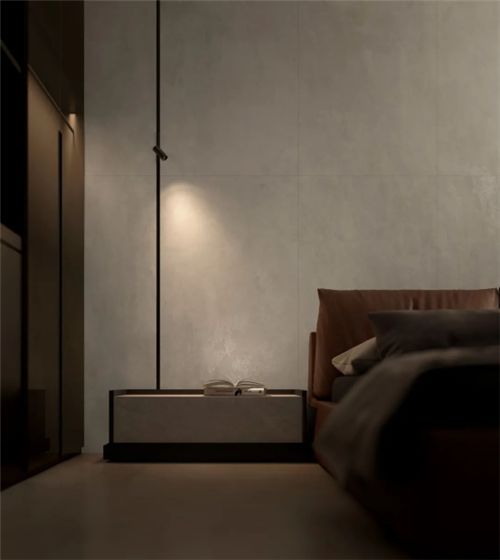▲书香轻纹II AC715252G 卧室采用线条简单的家具及灯光渲染,加上少而精的陈设,在满足基本功能需求前提下,达到以少胜多、以简胜繁的效果,从视觉上可以减轻空间压力。 金属的硬朗与灰的淡雅相互交织,刚柔并济,利落线条勾勒出现代美,打造一个简洁舒适且实用的栖息之地。