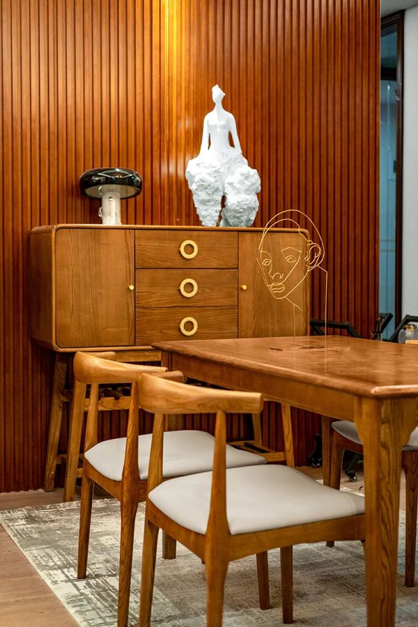返璞归真,方为自然。这也是新中式重要的质感元素,居于都市水泥丛林,方寸之间最难寻觅的就是一抹自然与宁静。所以新中式虽然也具备传统中式的大气、庄重、对称风格,但更多的还是从居住者归属感出发,形成既贴近现代居家生活习惯,又能在氛围营造中懂得聚会,并升华出水墨画般朦胧诗意美的治愈氛围。