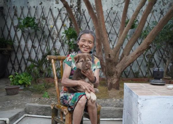 给自己梳洗一番,然后换上一身鲜艳的旗袍,镜头面前,年过八旬的老人露出了久违的笑容。在按动快门的一刻,把“大黄”抱在怀里,这是陪她走过了10年的唯一亲人……
