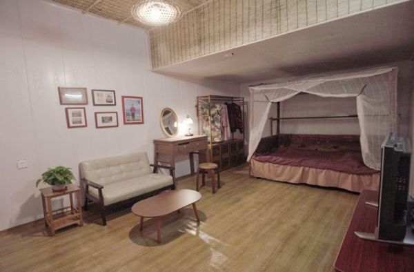 改造人员先给房间装上坚固的房门,墙面加装上防尘防潮墙板,吊顶打木框架并盖上防尘白胶布,防止墙面掉沙。