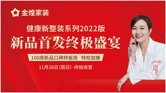 新品首发活动即将在11月28日收官,为普惠更多消费者,金煌家装决定面向市场再投放100席名额,客户可以享受到总裁特权的最后优惠红利。健康为王,品质为尊!相信金煌家装的健康服务理念将领航着湖南、甚至是全国的家装发展趋势!